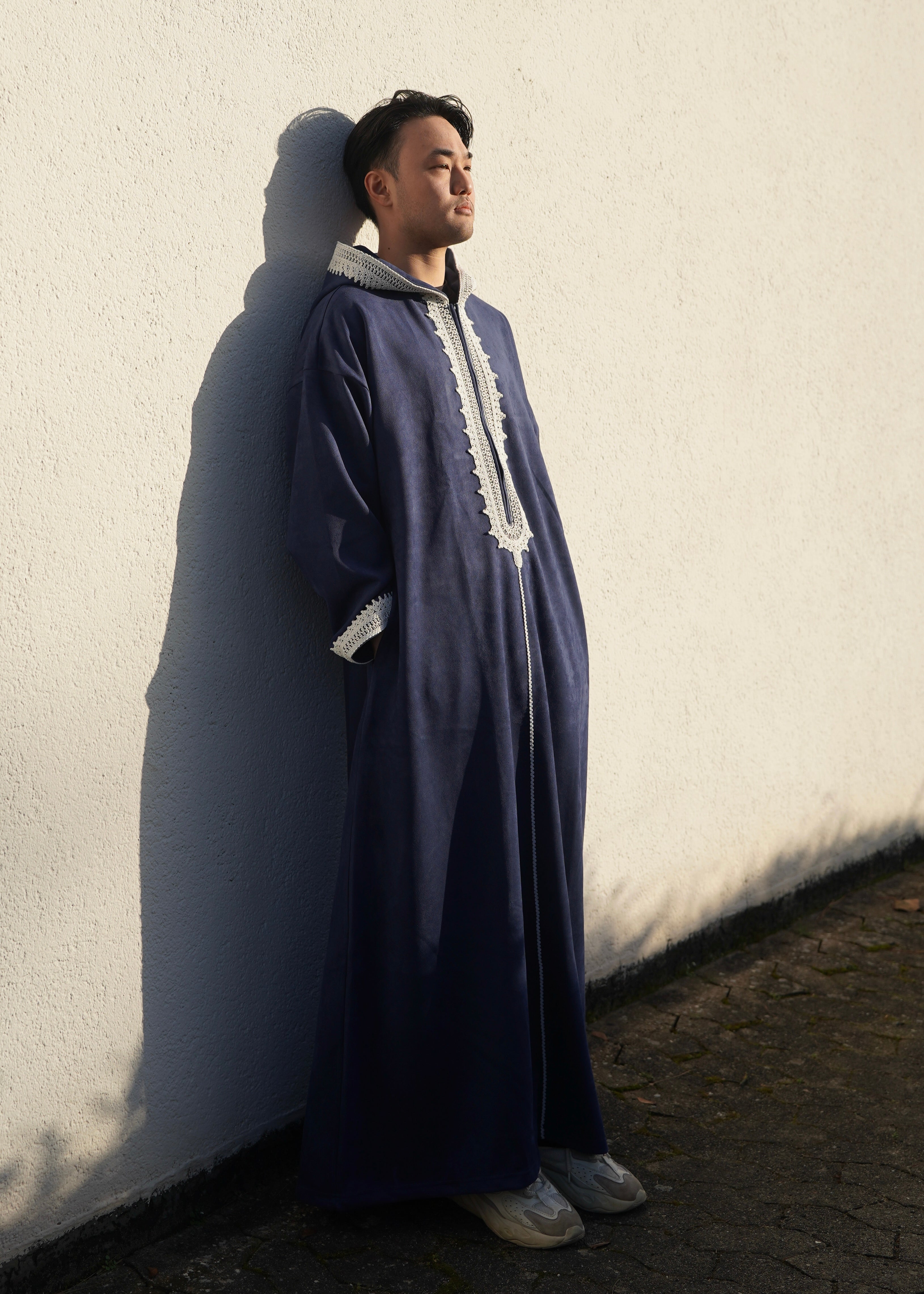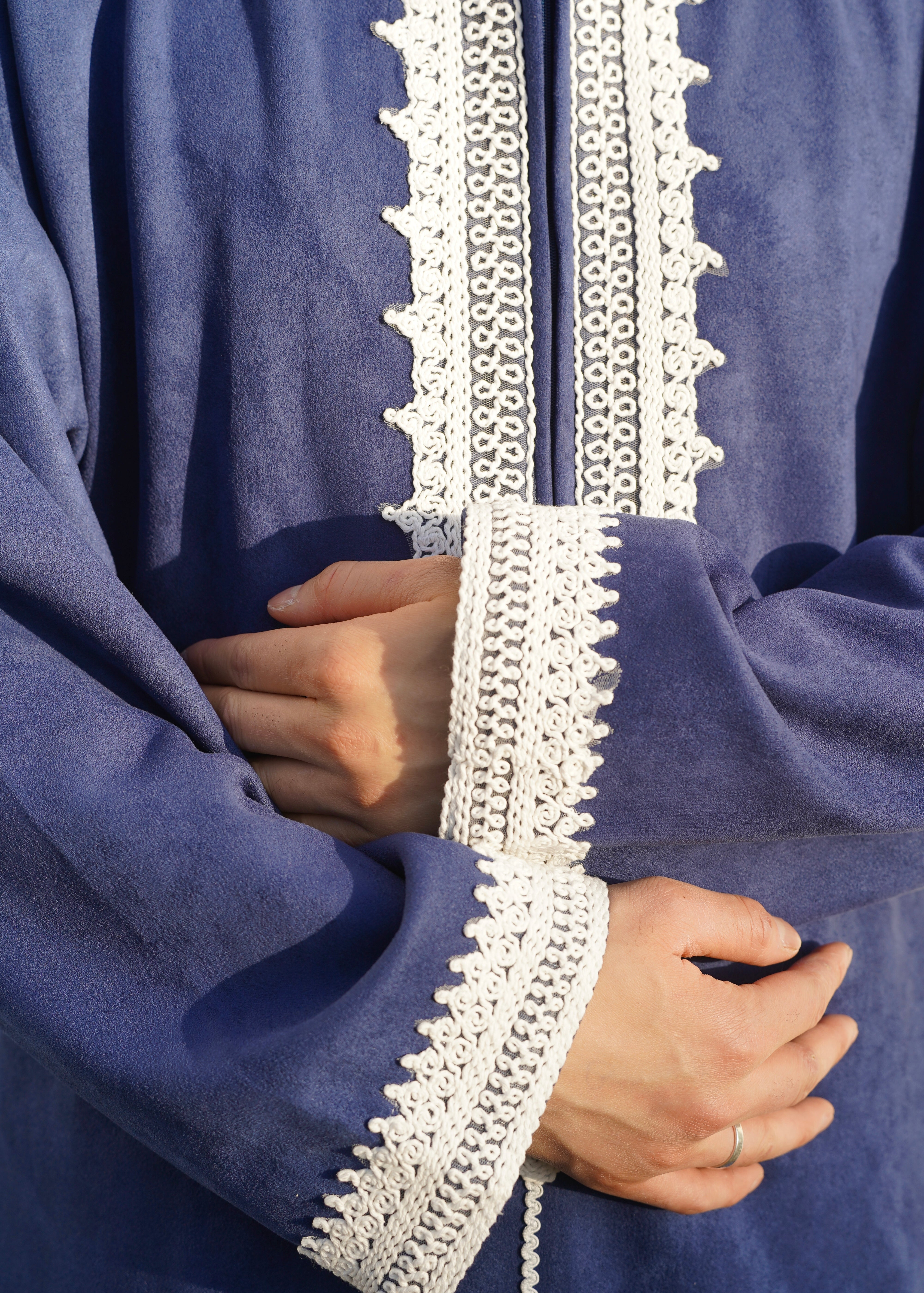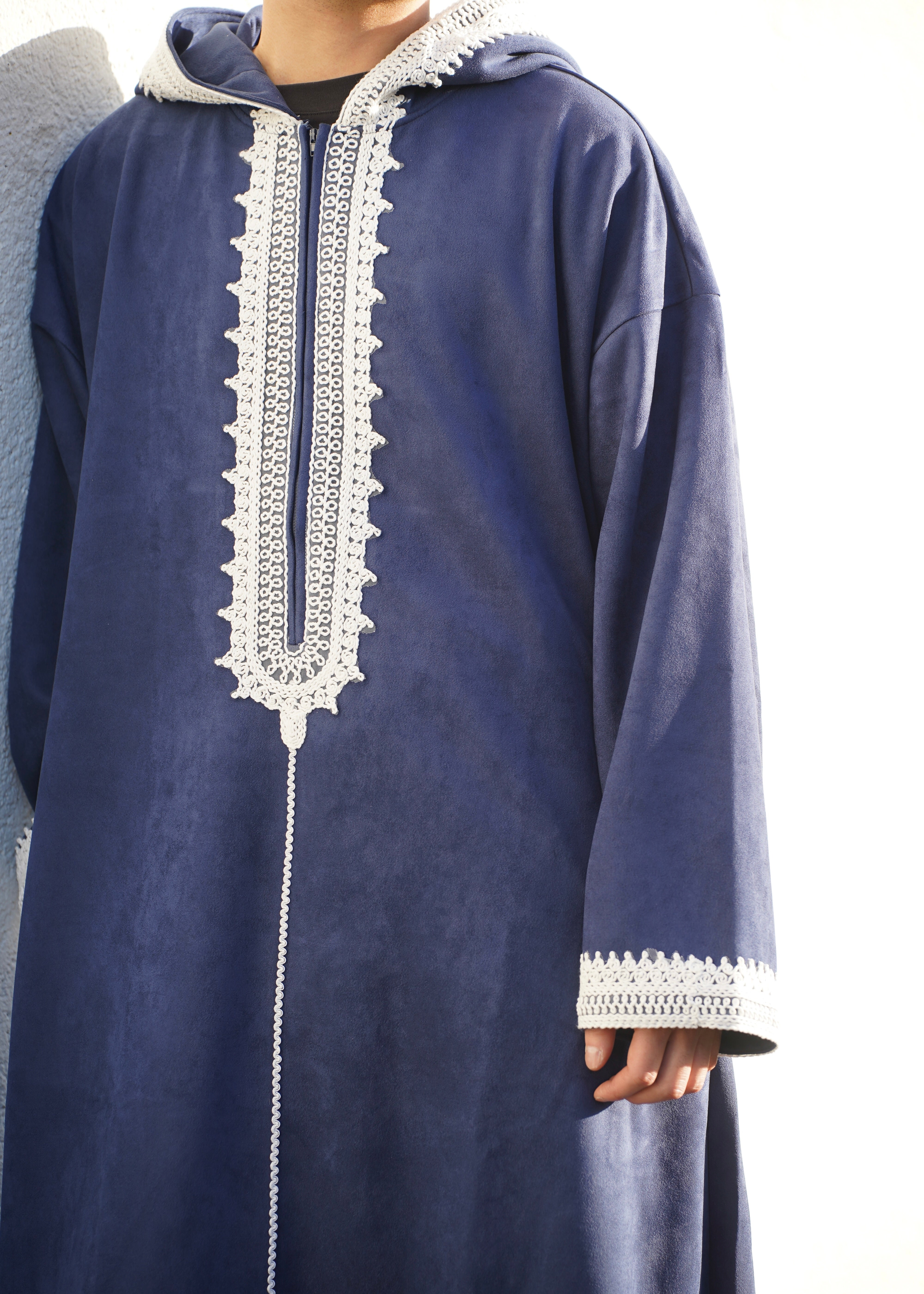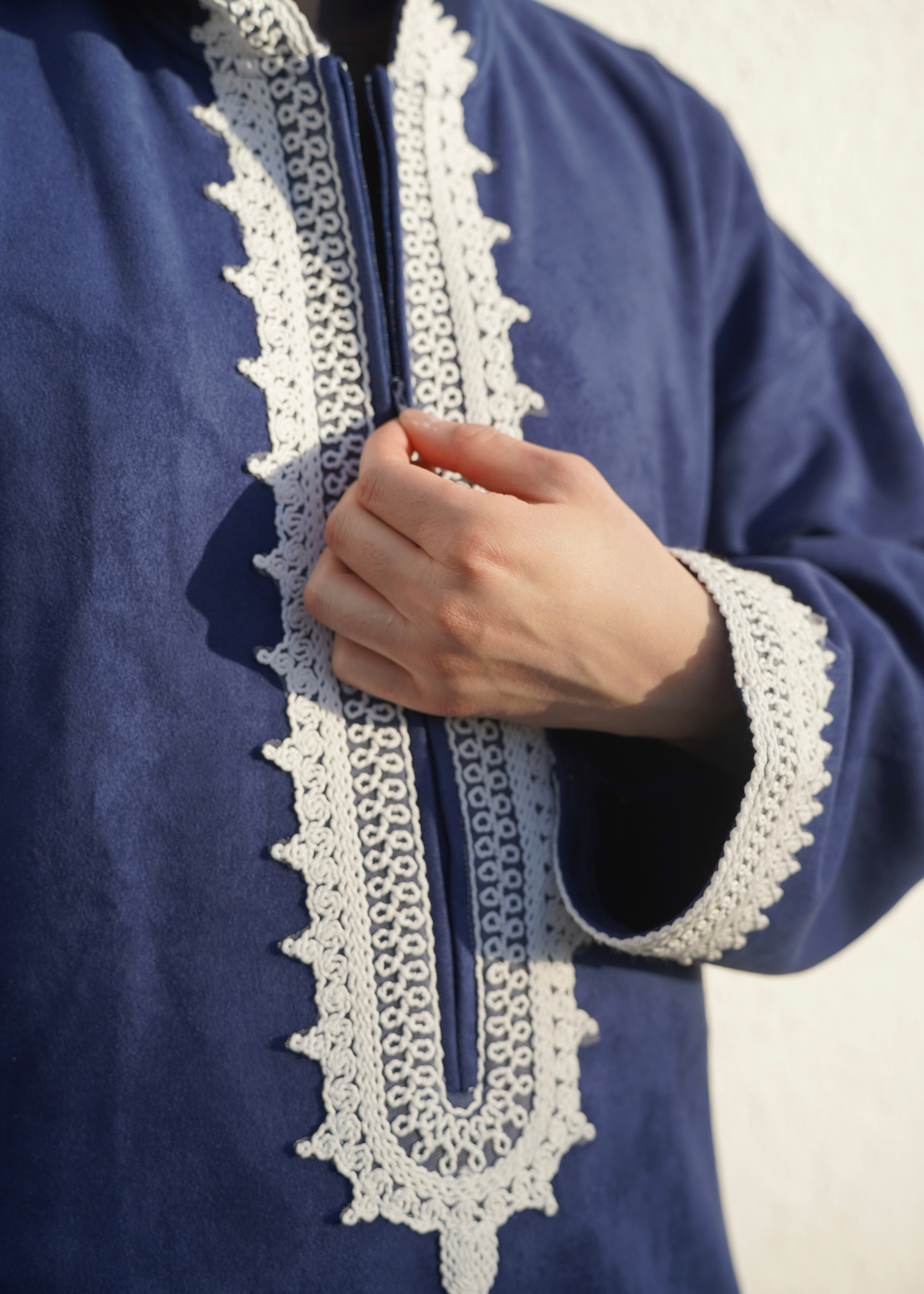 Premium Djellaba aus Velour Dunkelblau