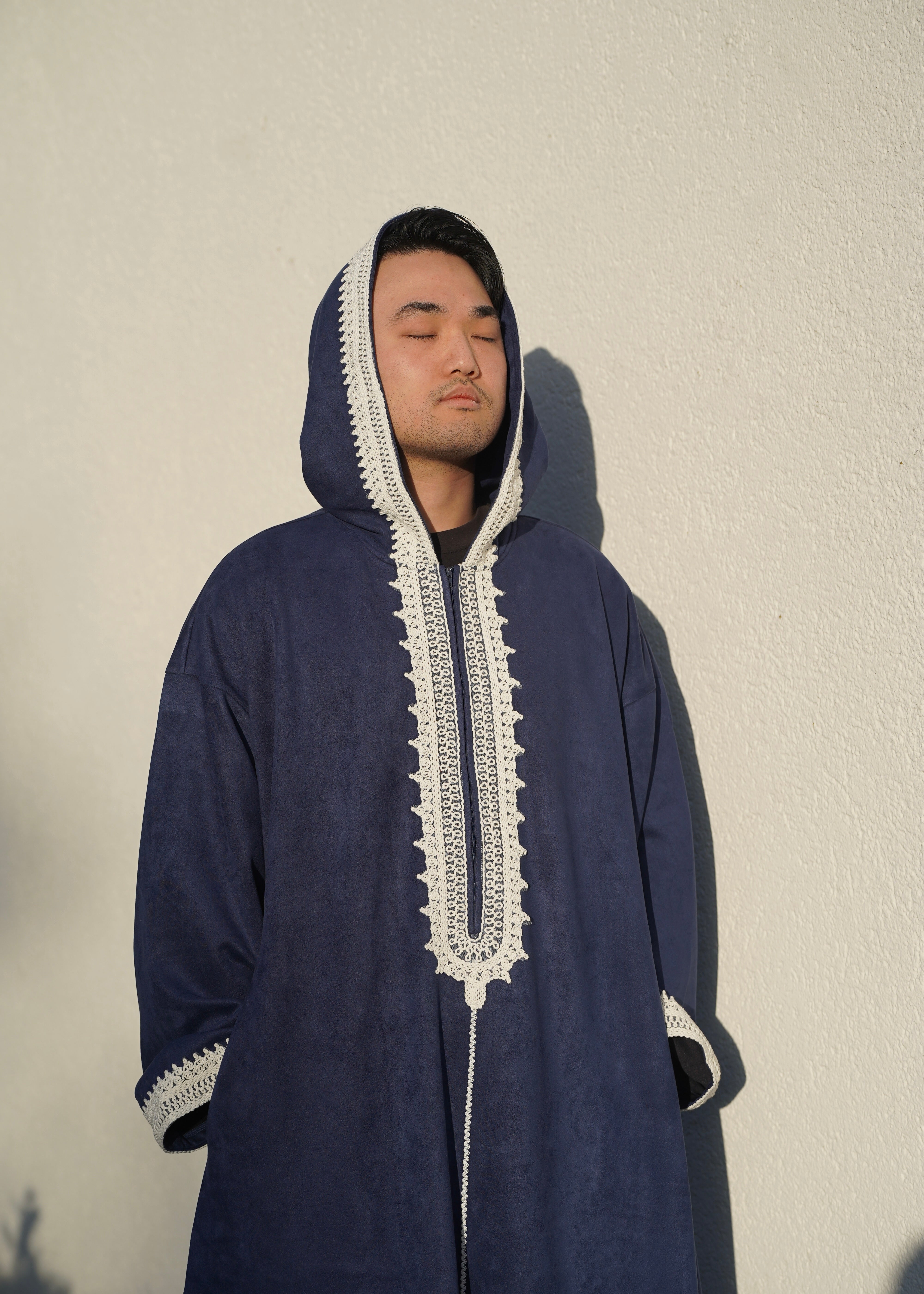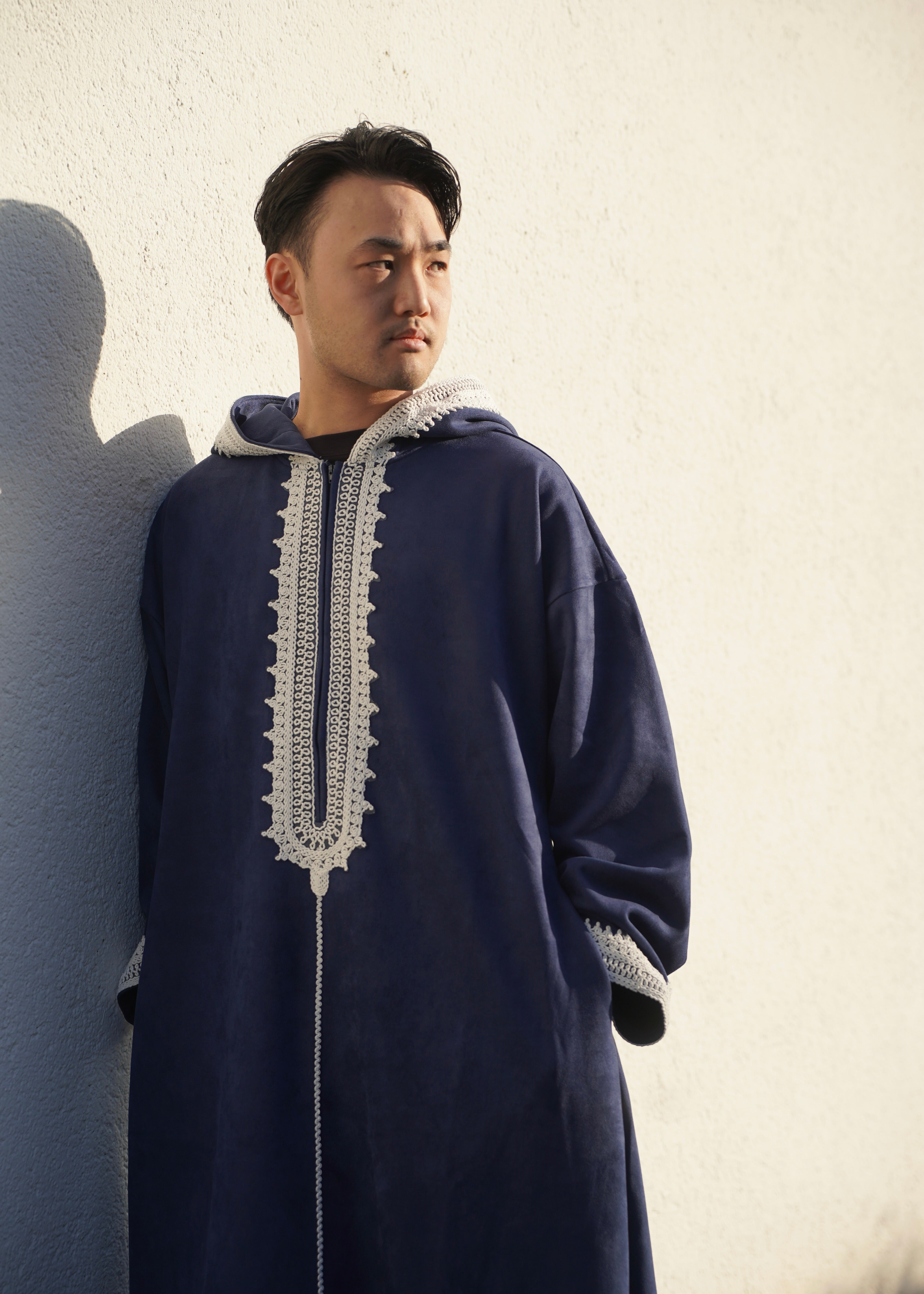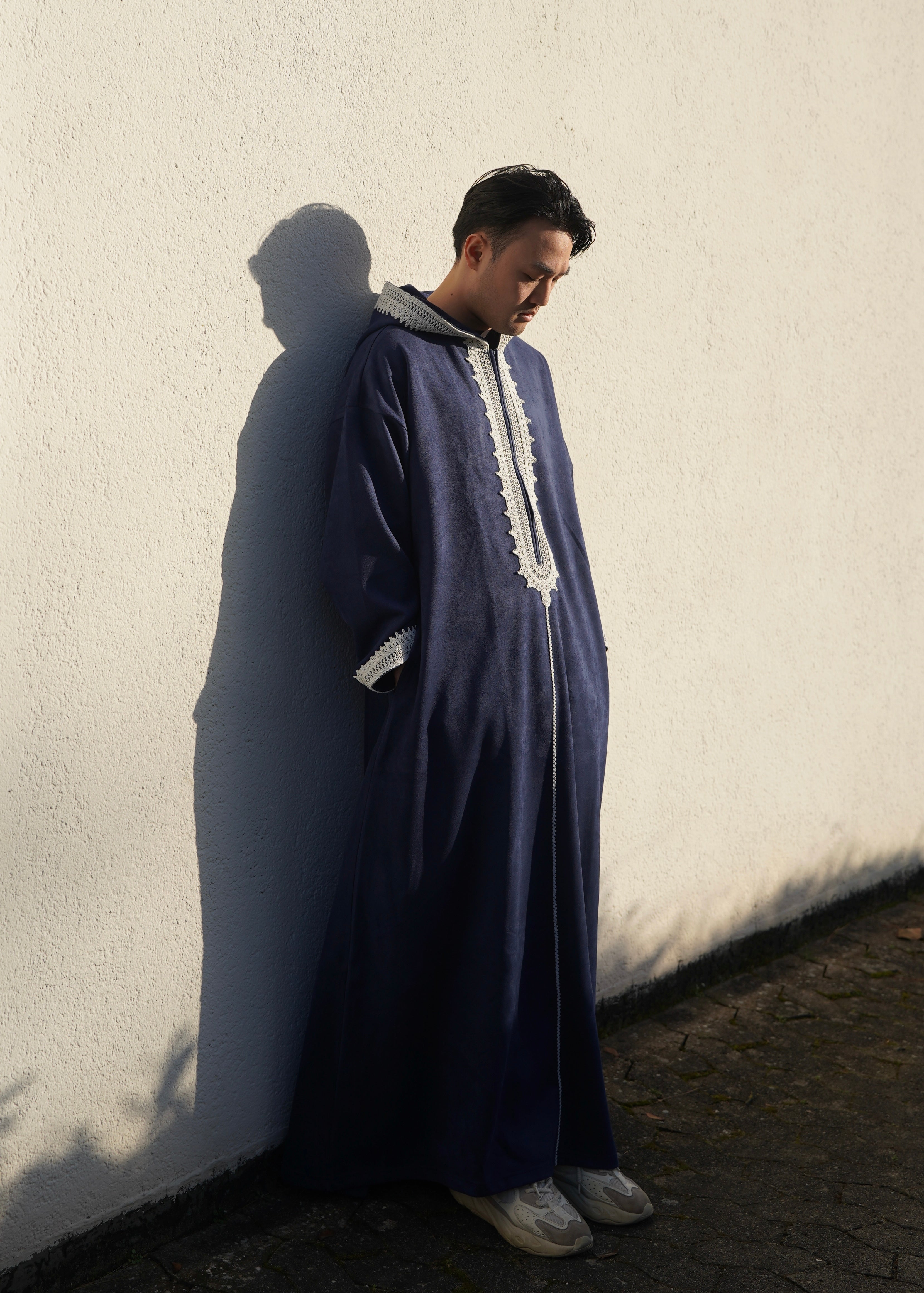 Premium Djellaba aus Velour Dunkelblau