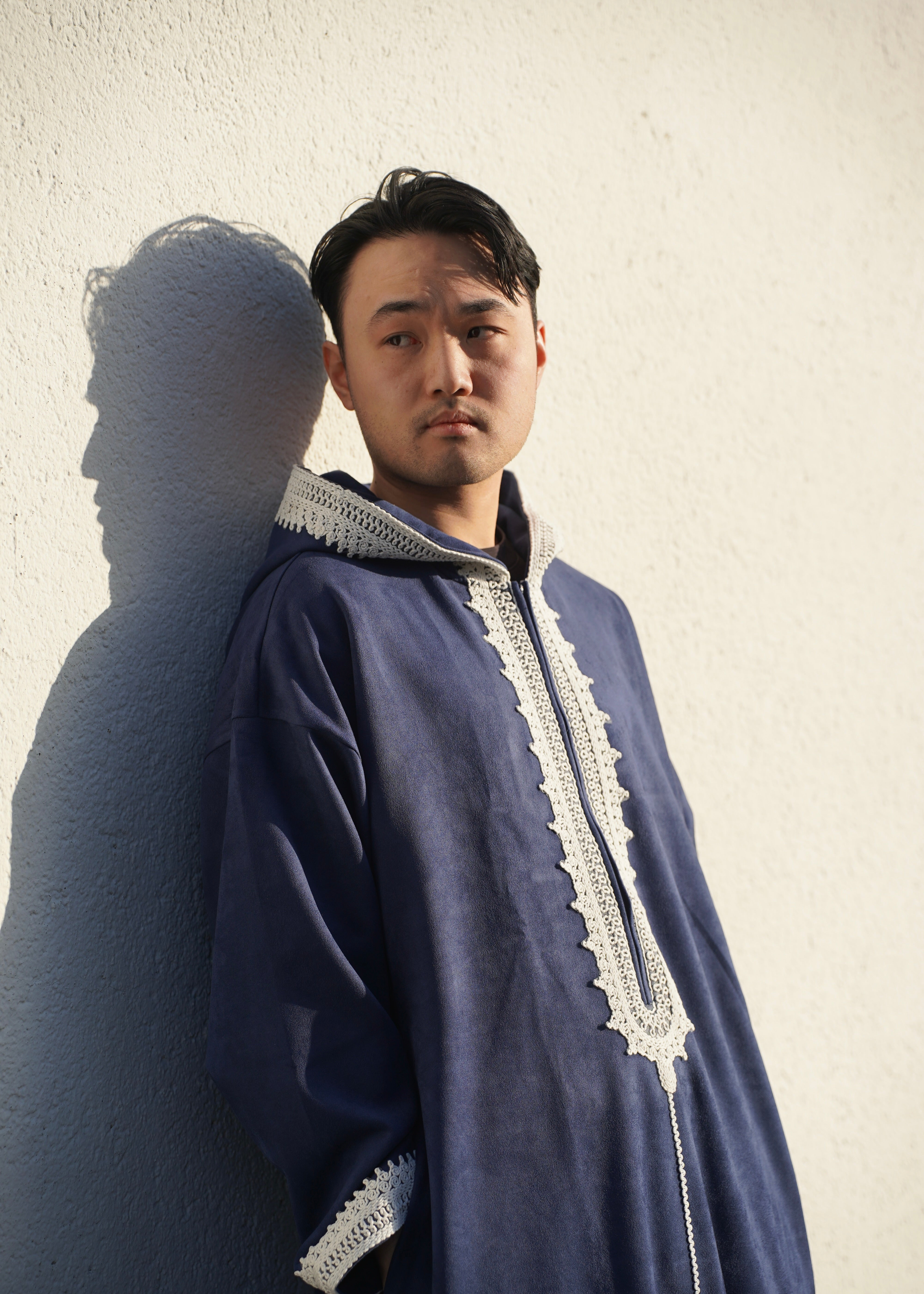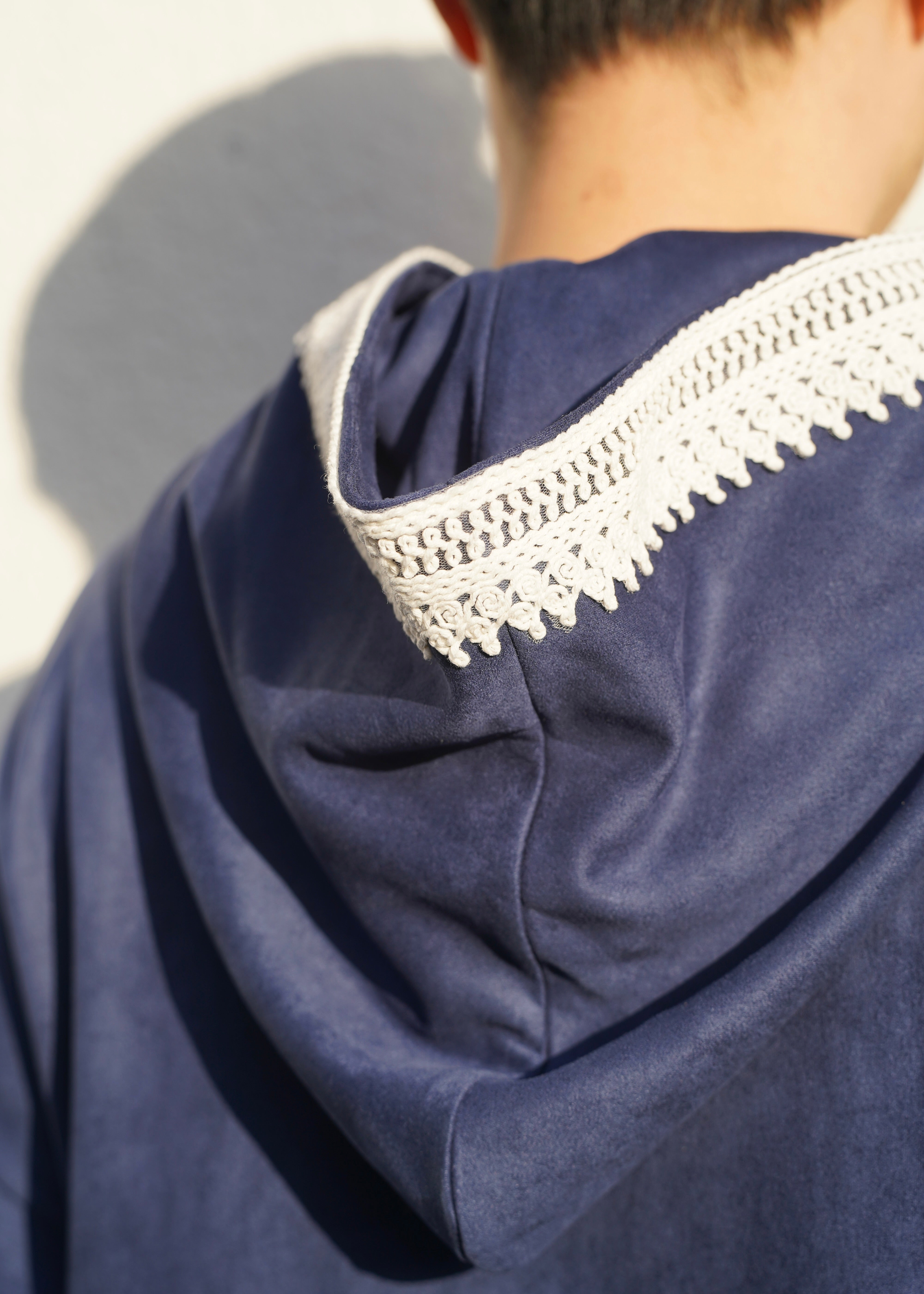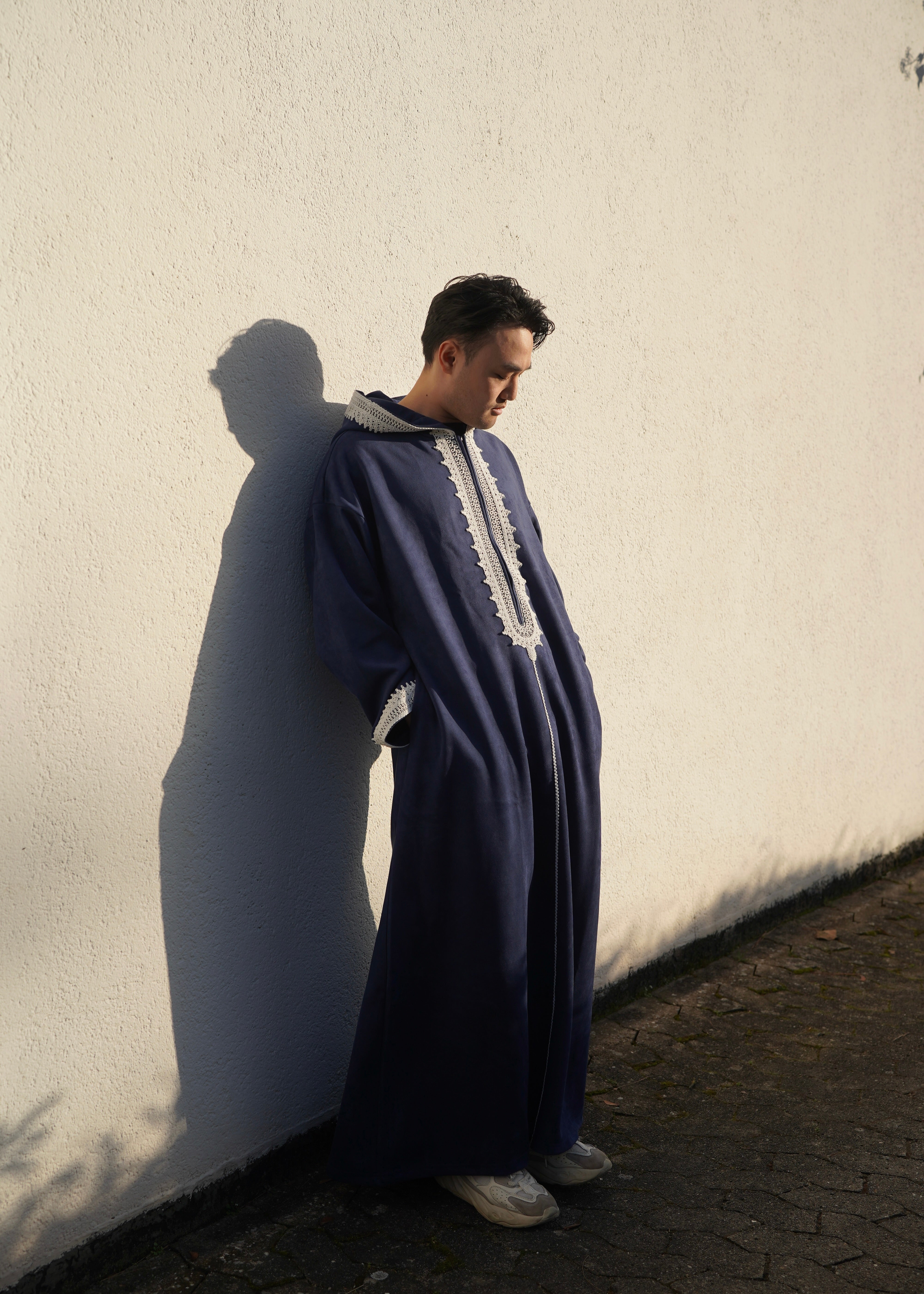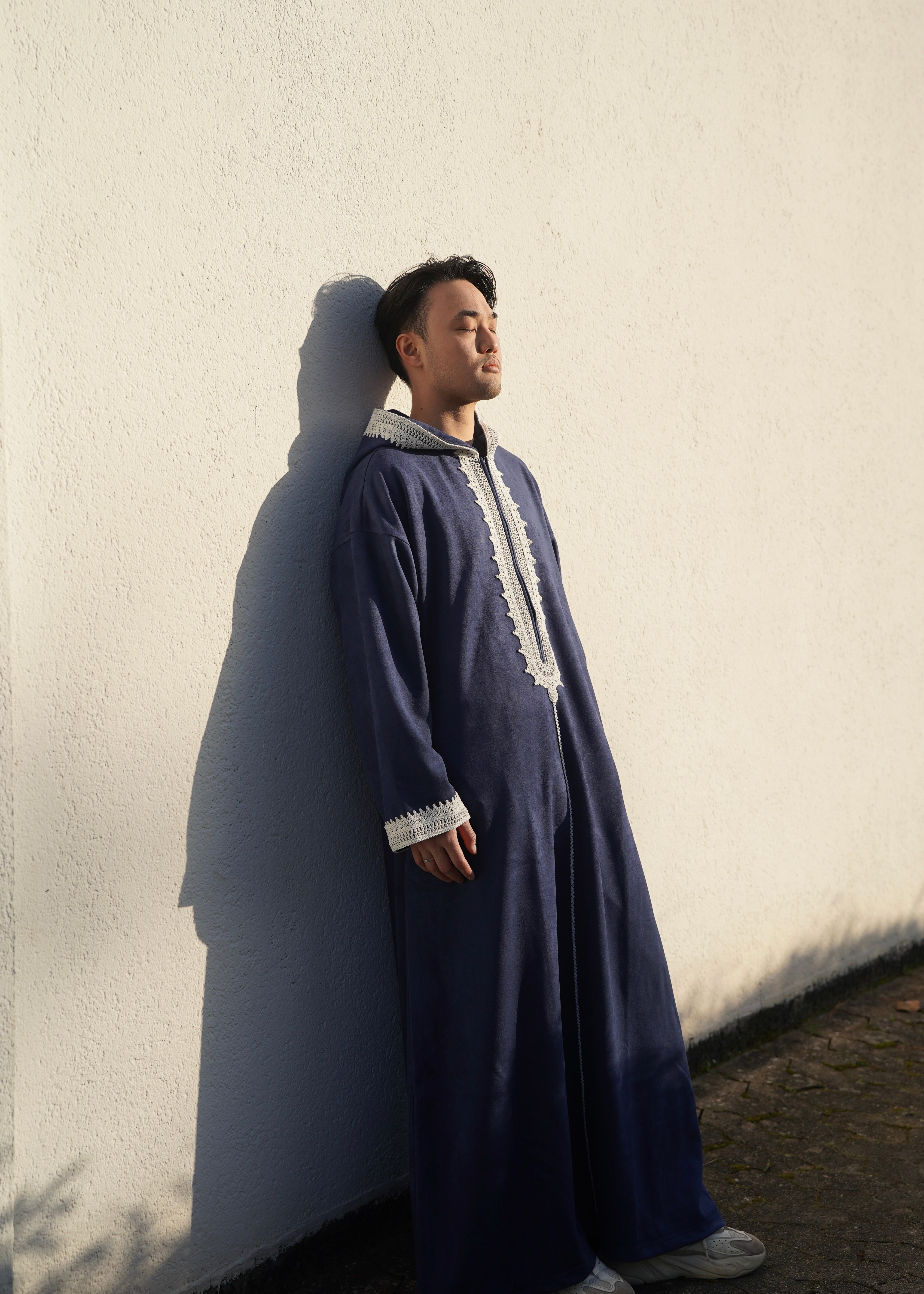 Premium Djellaba aus Velour Dunkelblau