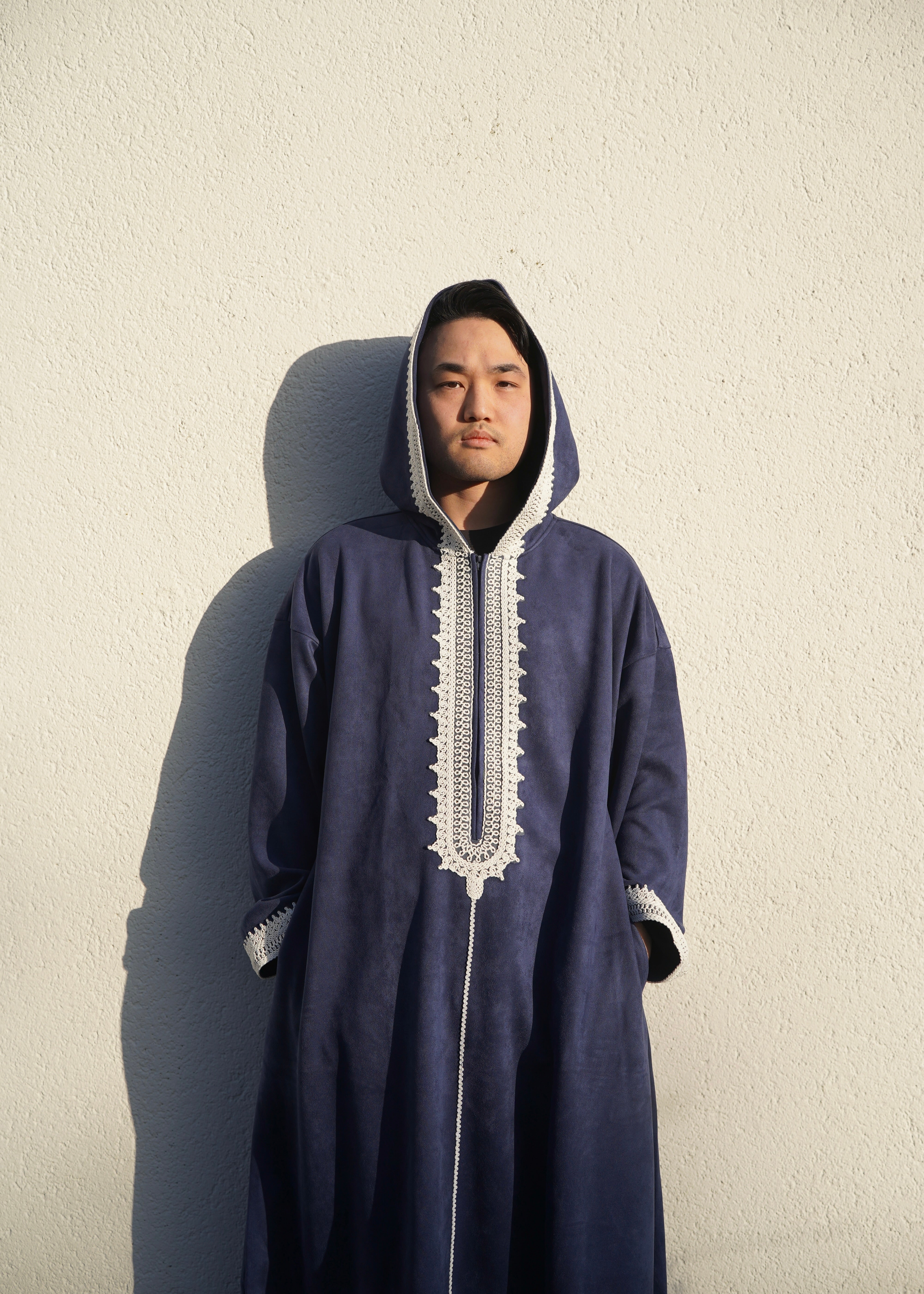 Diese elegante Djellaba aus hochwertigem Veloursstoff vereint traditionelle Form mit modernem Komfort. Der weiche, samtige Stoff fühlt sich angenehm auf der Haut an und sorgt für eine edle Optik.
