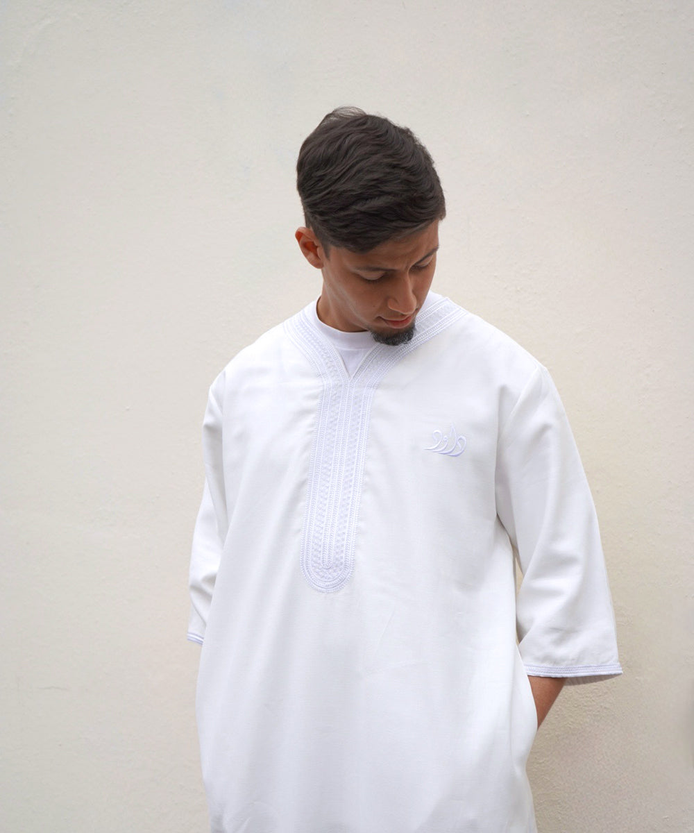 North African Qamis Weiss aus Leinen