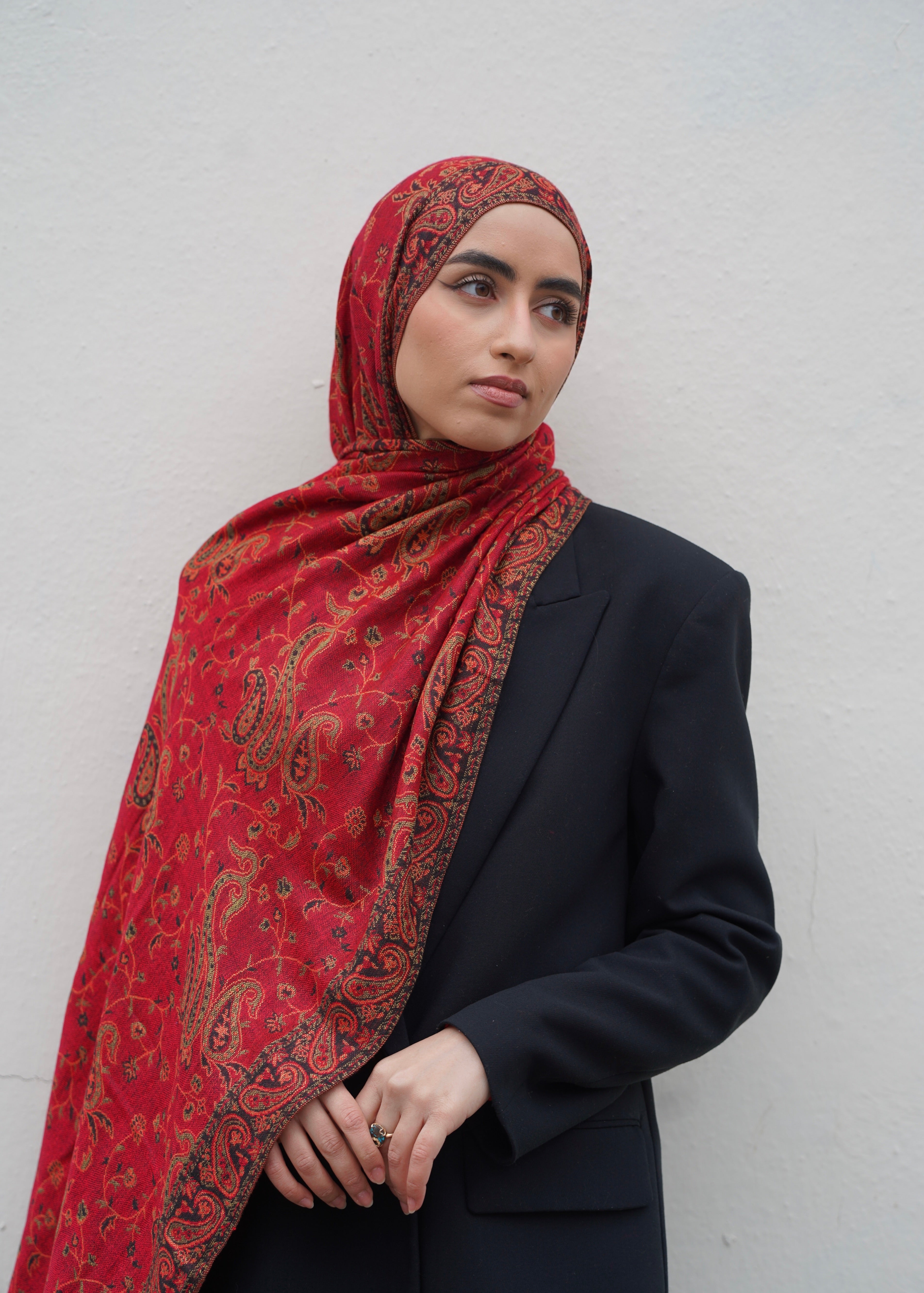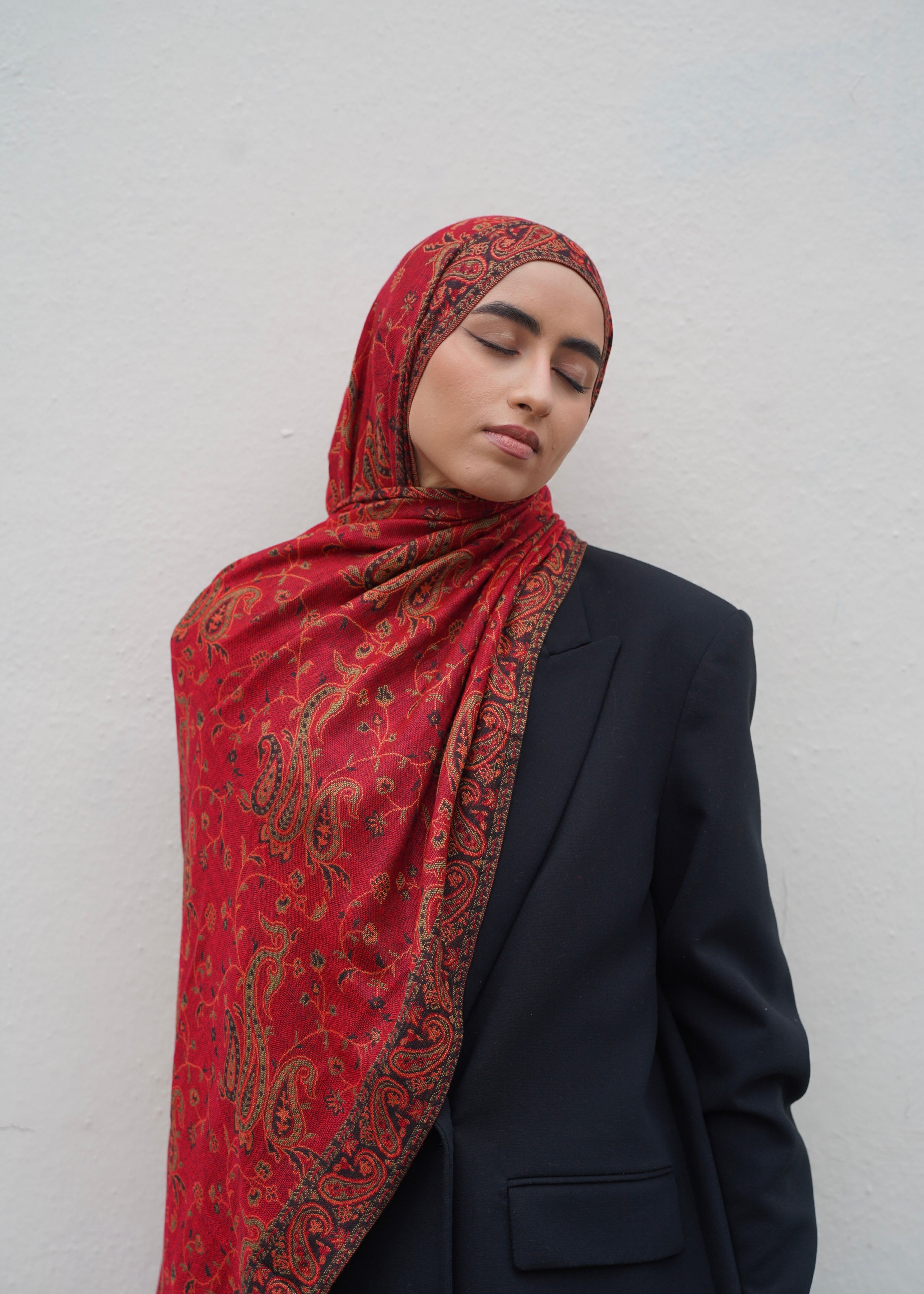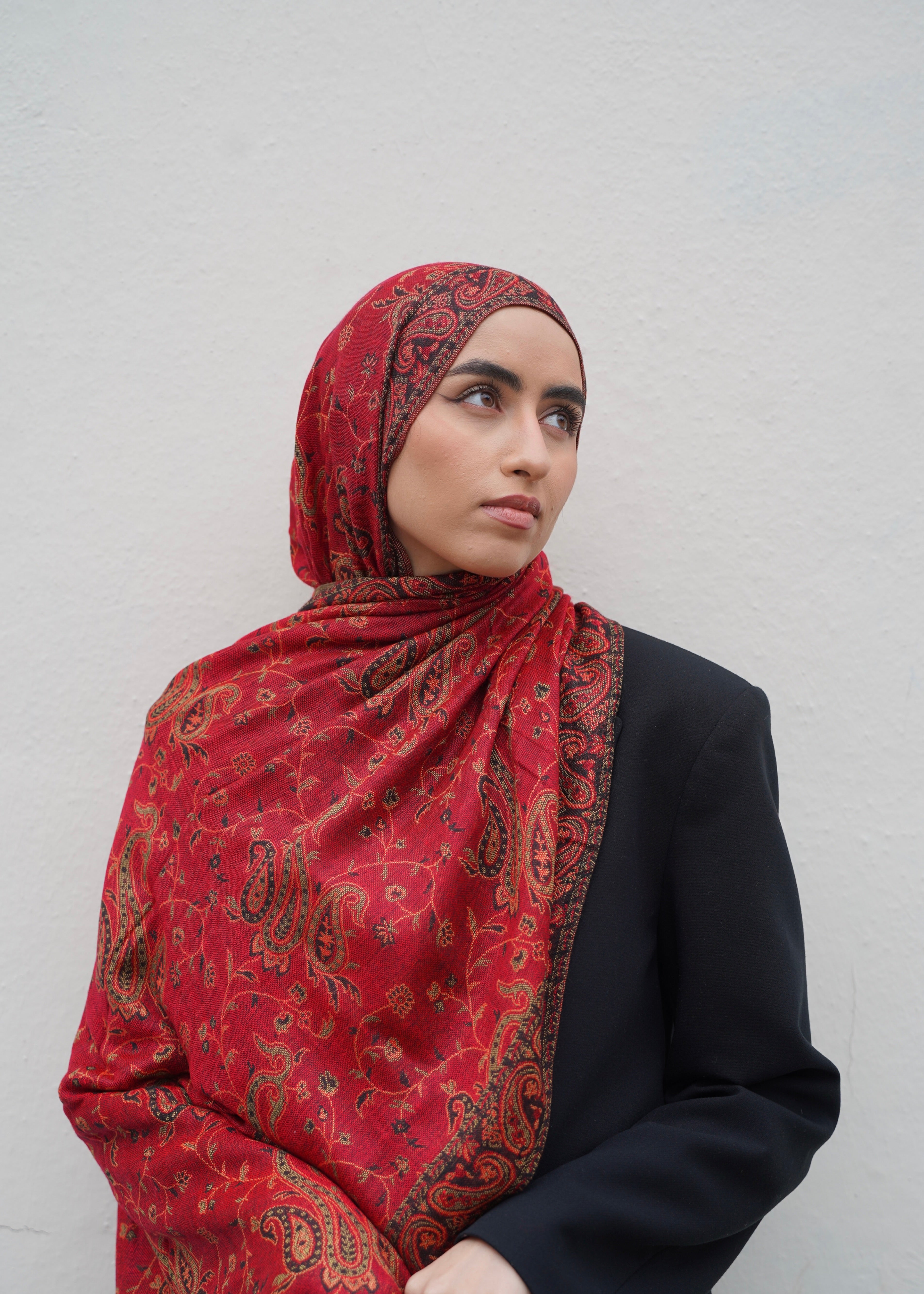 Pashmina Jacquard Scarf - Garnet Red