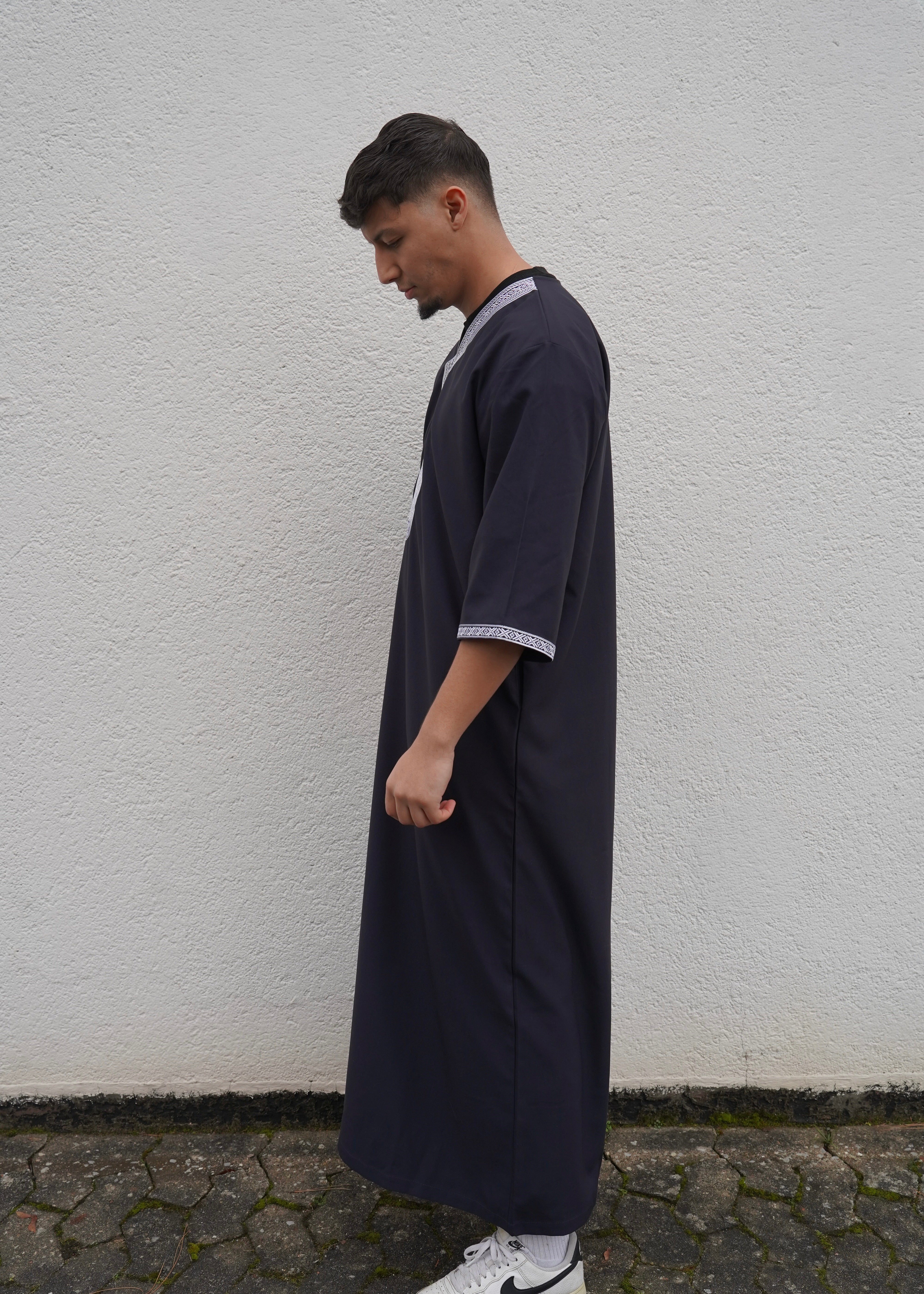 Discover the beauty and ease of North African culture with our black Qamis. This traditional garment embodies Islamic clothing that is both comfortable and fashionable. Immerse yourself in the world of North African fashion and enjoy the benefits of style and comfort.