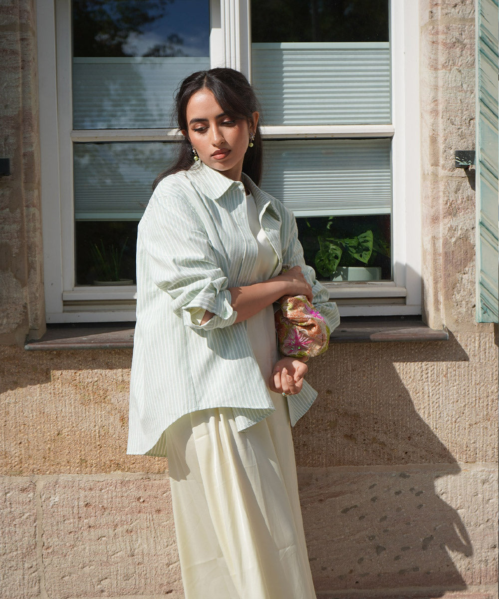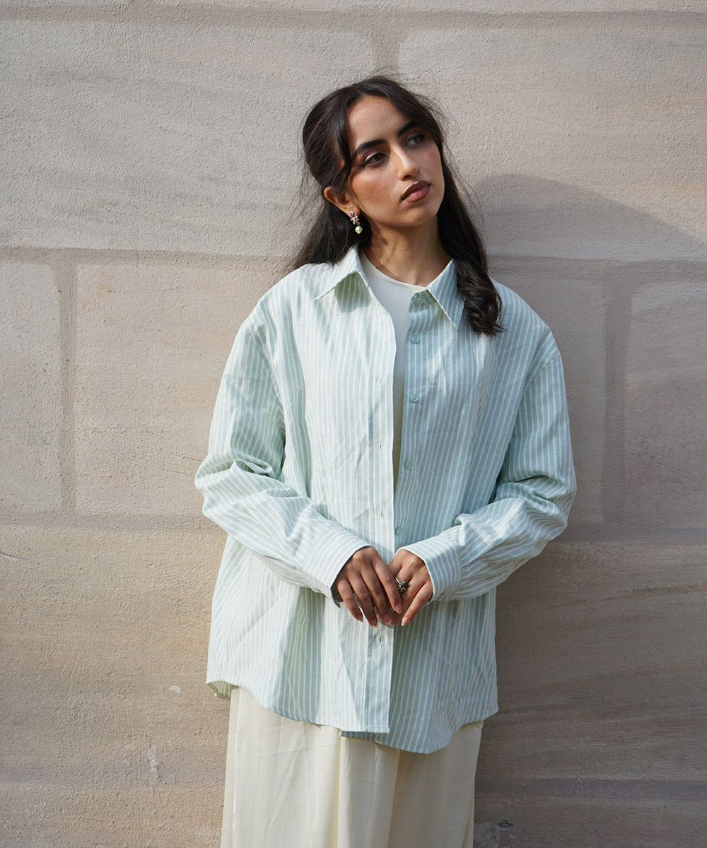 Striped women's shirt - green