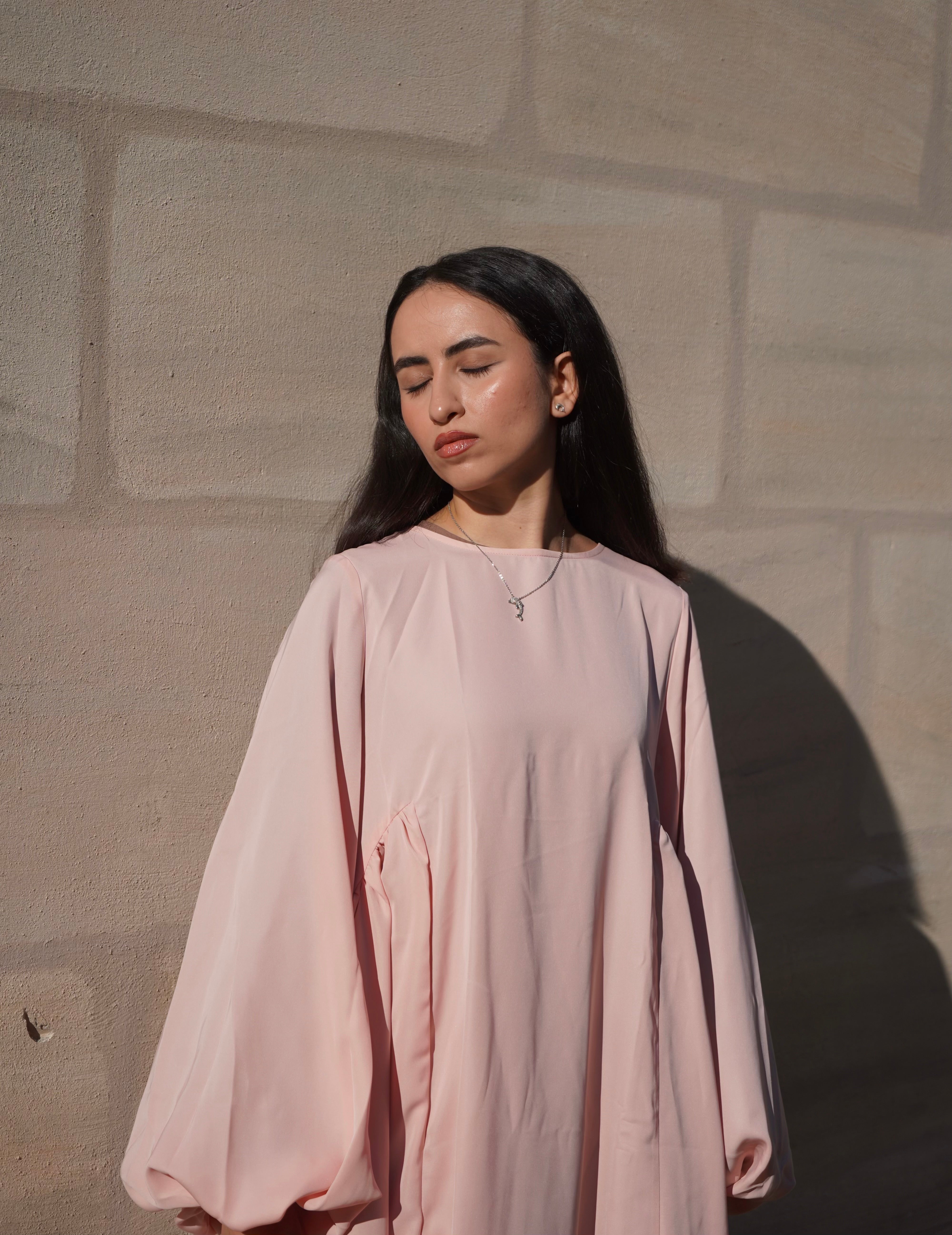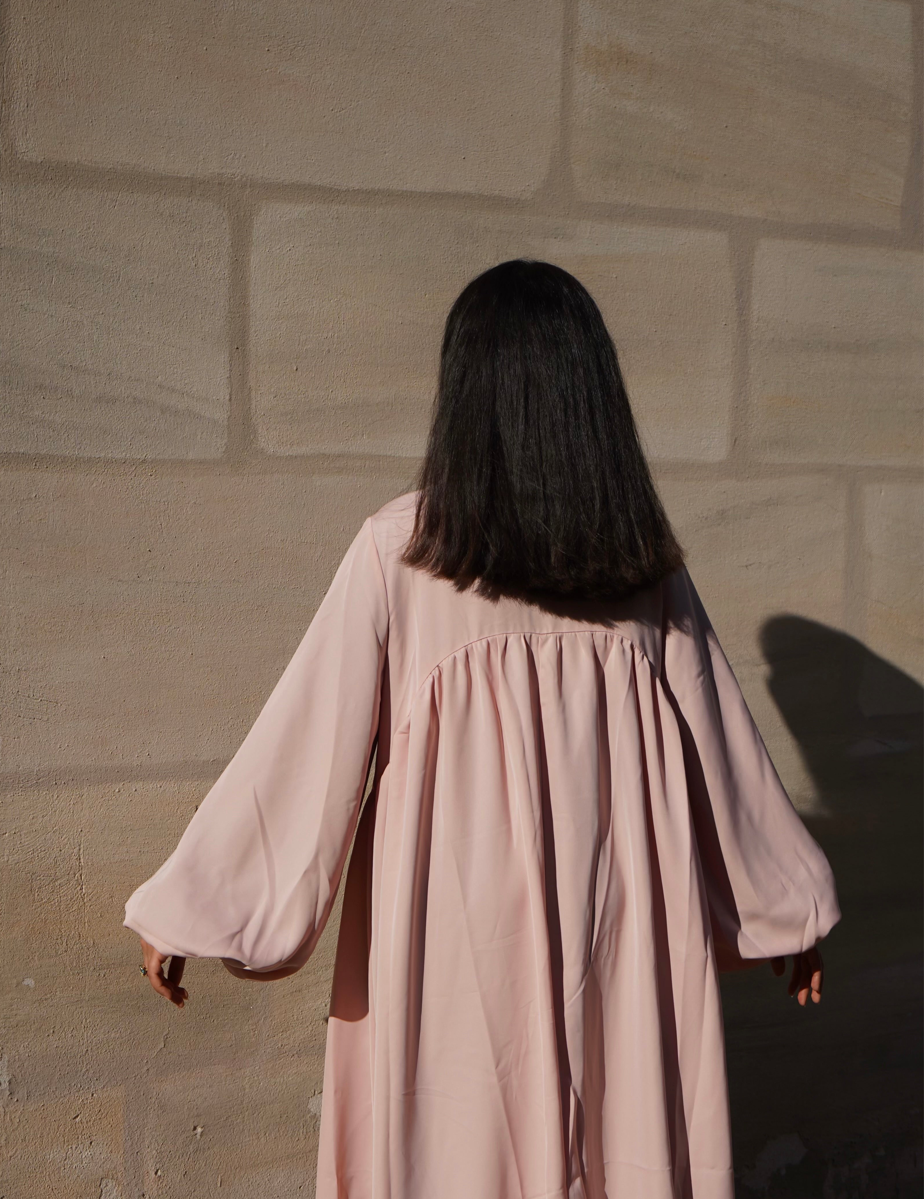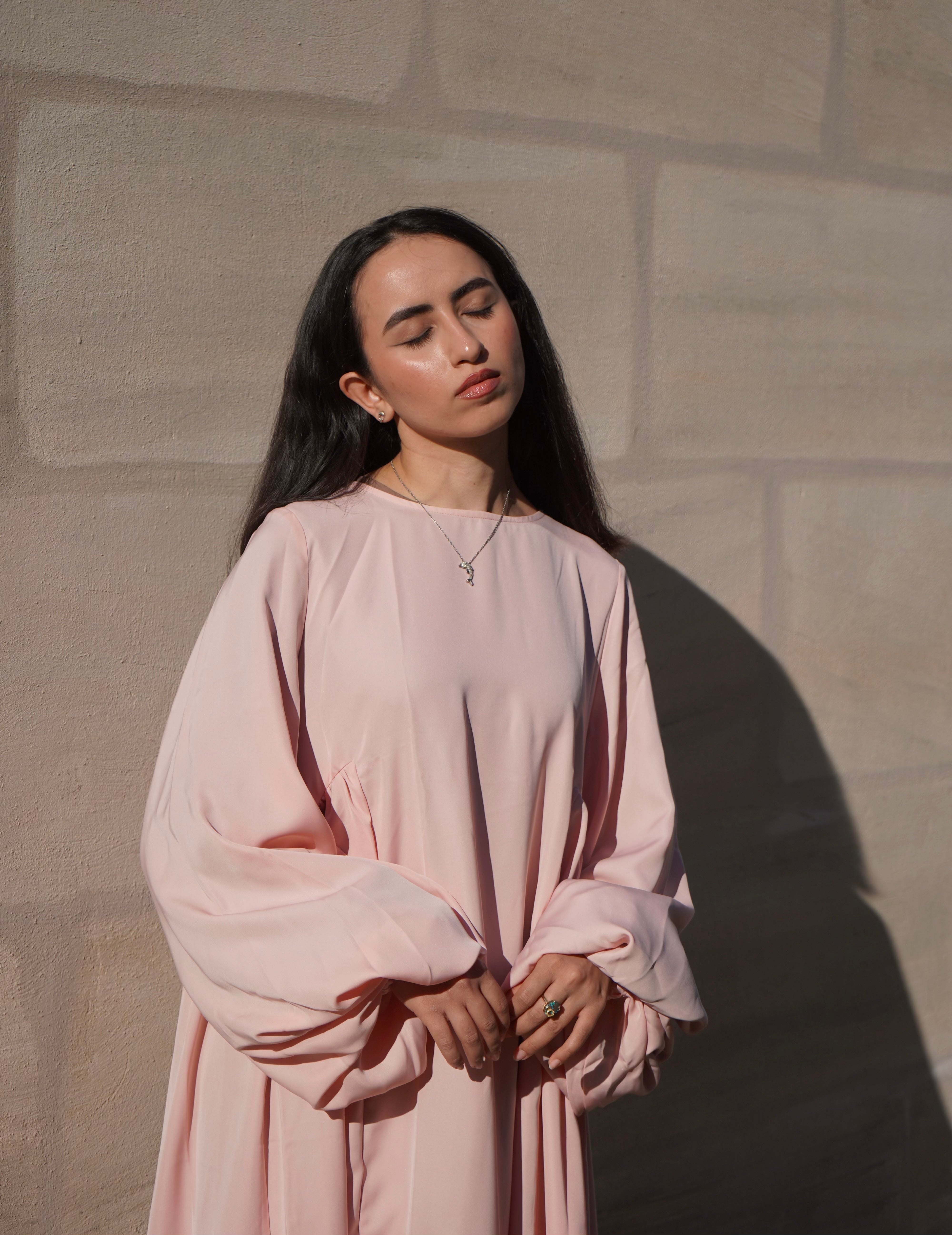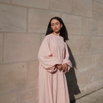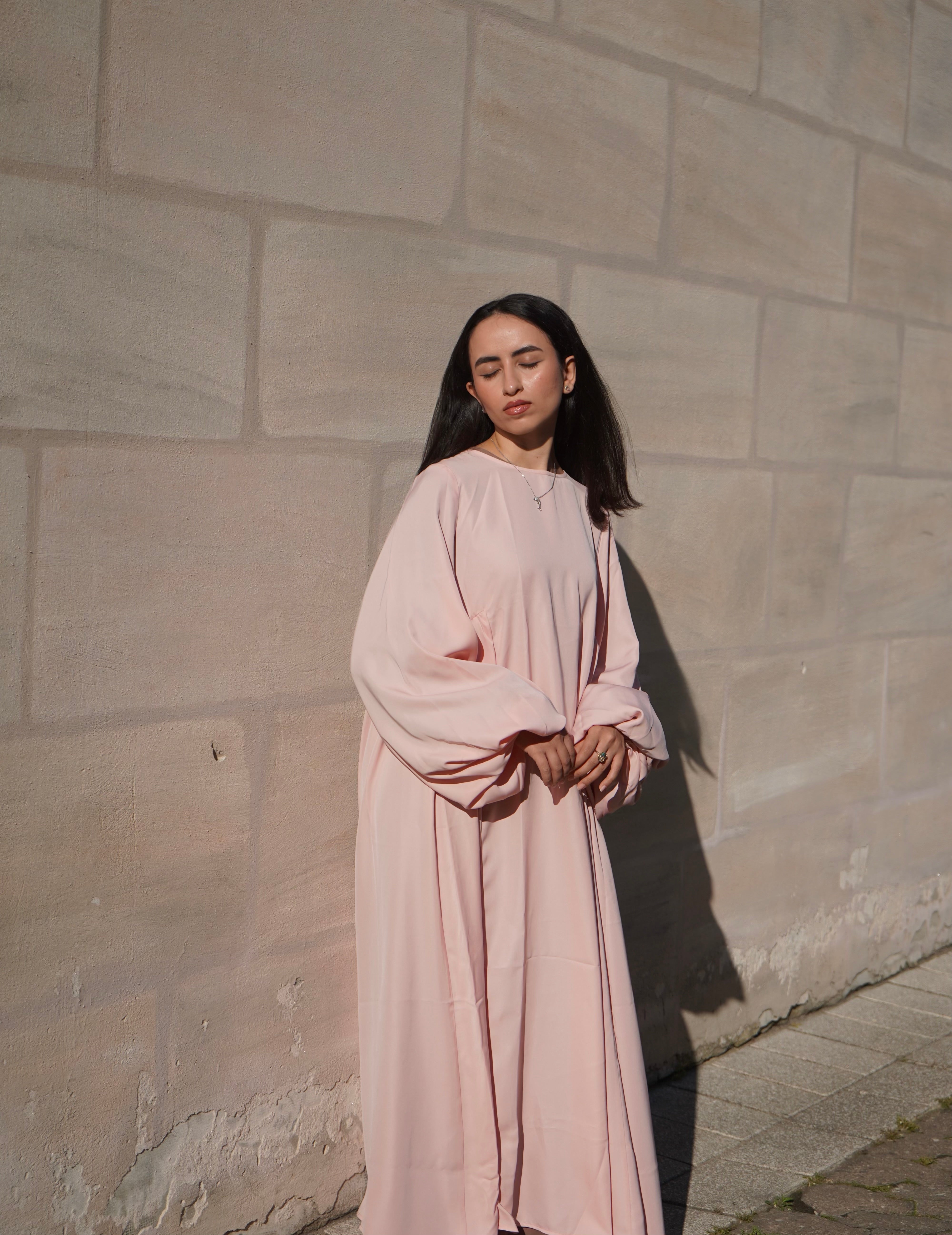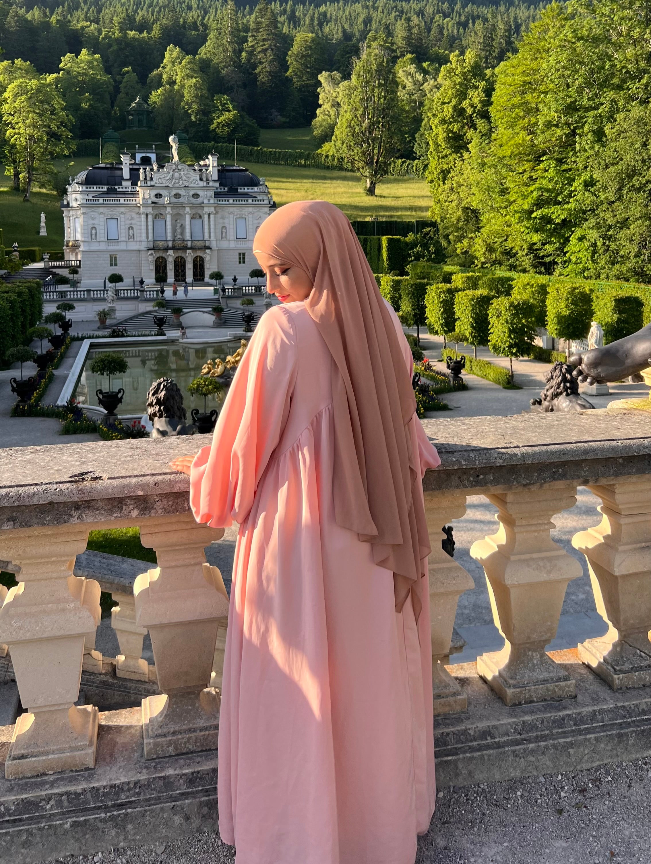 Der Stoff der Abaya ist hauchzart, extrem leicht und angenehm kühl, perfekt für warme Tage. Inspiriert von japanischen Erdbeeren zeigt sie sich in einem einzigartig schönen Strawberry-Pink, das Frische und Eleganz vereint.